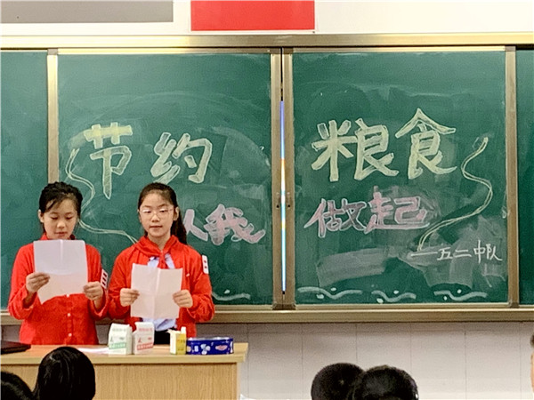 活动中,各班班主任为同学们讲解节约粮食的意义,同学代表则分享自己在餐桌节约粮食的经验心得。