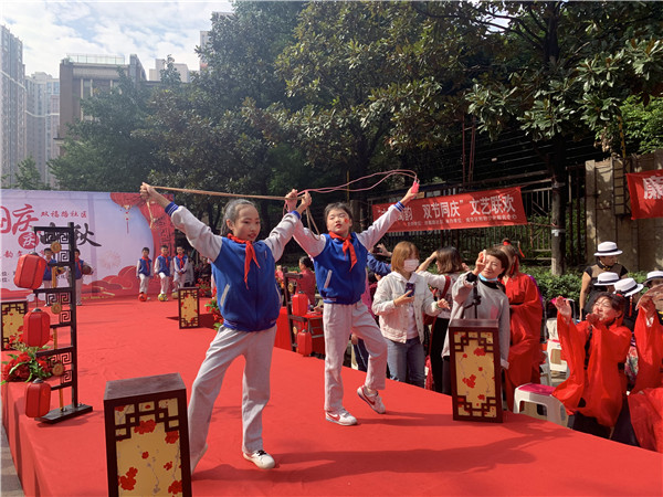 这是一场热闹非凡的盛会。伴随着动人的旋律,石室小学的孩子们隆重出场,可爱的神情、整齐的动作吸引了大量居民驻足欣赏。年仅8岁孩子的杂技表演更是惊艳众人,迎来了观众热烈的掌声!