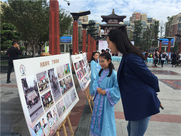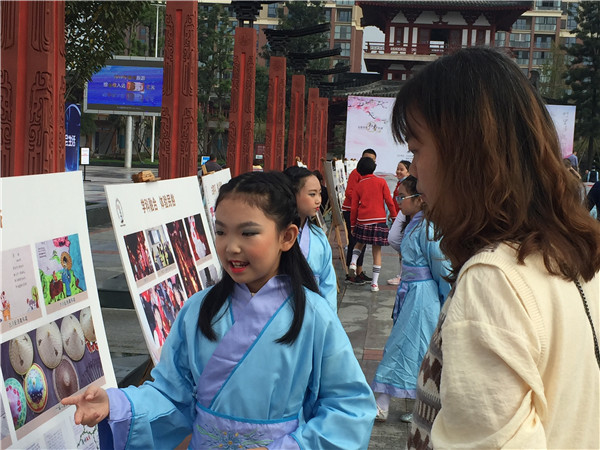 崇州市学府小学民俗文化课程成果在此次活动中展示。副校长谢敏、音乐组宋晓庆老师和来自五·七班的杨妡培、雷璐屹、纪予涵三位学生代表参加了此次活动。学校的课程成果展板图文并茂地展现出学校民俗课程的结构以及开展情况,吸引了许多领导、来宾驻足参观。三位学生代表向前来参观的领导、来宾详细介绍了学校民俗文化课程的丰硕成果。三位讲解员落落大方的介绍受到了前来参观的领导和来宾的高度赞扬。