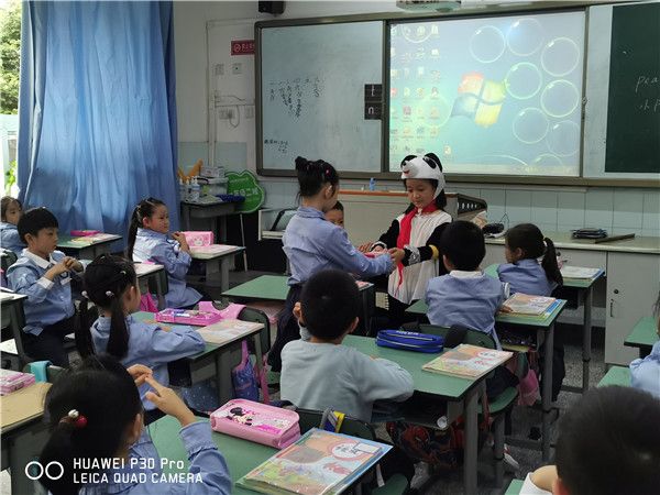 9月30日,在国庆中秋双节来临之际,成都市彩虹小学新萌宠“彩虹豆”来到各班教室给每个班带来了“爱成都•迎大运 童心庆国庆”知识大竞猜活动。新晋彩虹萌宠是与成都市“爱成都·迎大运”宣传活动同一日诞生,以“熊猫”为原型,用学校非遗面塑制作出来作为彩虹小学“迎大运”活动以及今后各种活动的学校“爱豆”卡通使者,其名字得名于彩虹Idol即彩虹豆,也就是“彩虹Pea”的意思。