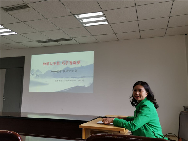 华严小学廖家秀主任基于“移步换景”这一知能点设计了《妙笔写美景 巧手著奇观》的组文课例,得到了老师们的一致好评;赖红霞老师调动多感官带来《读想结合秋如画——边读边想象画面》的组文课例给大家美的感受,同时也带来了对于写景古诗中想象画面方法的思索;吴婷老师通过有趣的绘本故事创编了《拮几抹颜色,绘缤纷世界》的组文课例;陈天琦老师巧妙地将“桥”和“过渡句”相结合,设计了《“搭起桥梁”的过渡句》的组文课例;蒋丽老师以有趣的搭救游戏设计了《凉风起兮秋意浓——了解比喻 创用修辞》的组文课例;赵家蓉老师立足于现代短诗的特点和创编,带来的《品现代诗 颂母爱情》组文课例引发了大家更多的思考;邬亚林老师利用三篇有趣的寓言故事设计了《小提示 大作用——对话中的提示语》的组文课例;谢辉老师抓住“细节描写”知能点创设了《品味人间最无私的母爱 细节描写刻画人物》的组文课例。精心的设计、精美的课件得到了老师们的肯定。