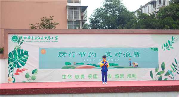 为了增强学生的节约意识,促使学生养成良好的习惯,近日,成都市青白江区大弯小学举行了“厉行节约,反对浪费”主题教育活动。