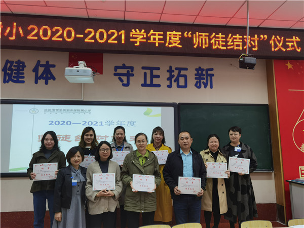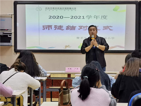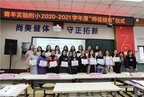 为进一步提升成都市青羊实验中学附属小学教师队伍质量,发挥骨干教师的引领作用,促进青年教师的专业发展,2020年10月12日,该校2020-2021学年度师徒结对仪式在学校学术厅隆重举行。