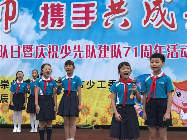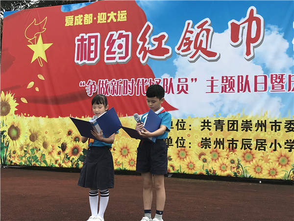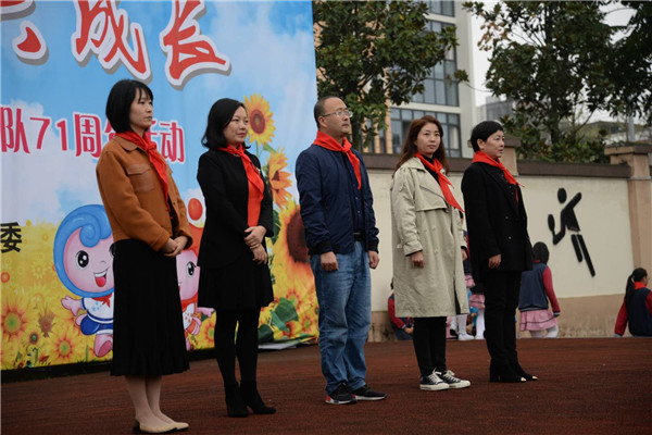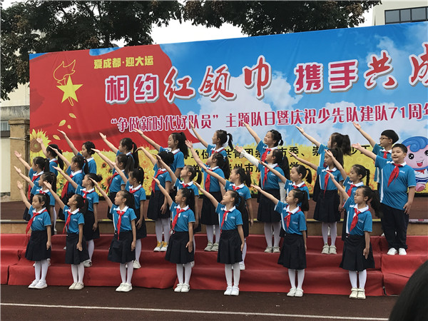 2020年10月13日是中国少年先锋队建队71周年的纪念日。崇州市辰居小学全体师生在学校大操场隆重开展了以“相约红领巾携手共成长”为主题的建队节庆祝活动。共青团崇州市委书记赵疆、崇州市少先队总辅导员杨玲及辰居小学行政人员共同参与。