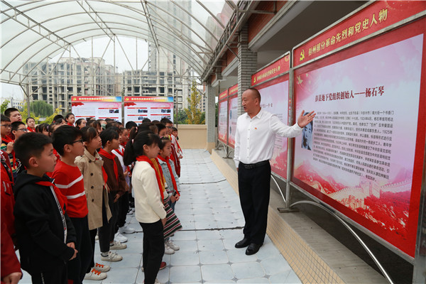 从中国共产党第一次全国代表大会到第十九次全国代表大会,周伟将中国共产党的光辉历史娓娓道来,让大队委们真真切切感受到,近百年来在党的领导下中国发生的翻天覆地的变化;紧接着,他给大队委们详细介绍了中国共产党在彭州各个时期的发展历程、延秀小学党组织的发展沿革、彭州的部分党史教育基地;还讲述了彭州部分革命先烈和党史人物的故事。