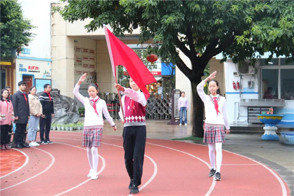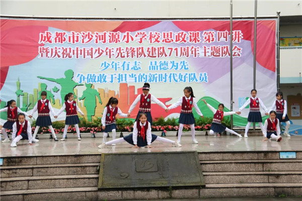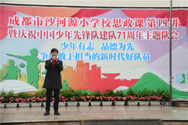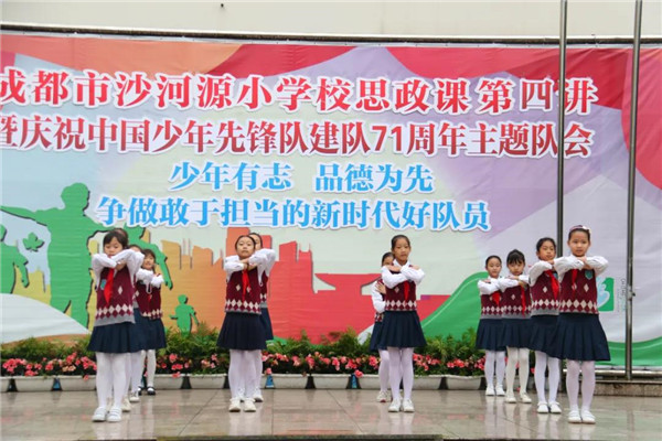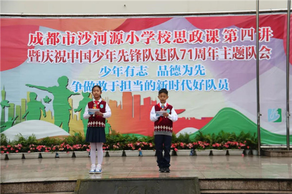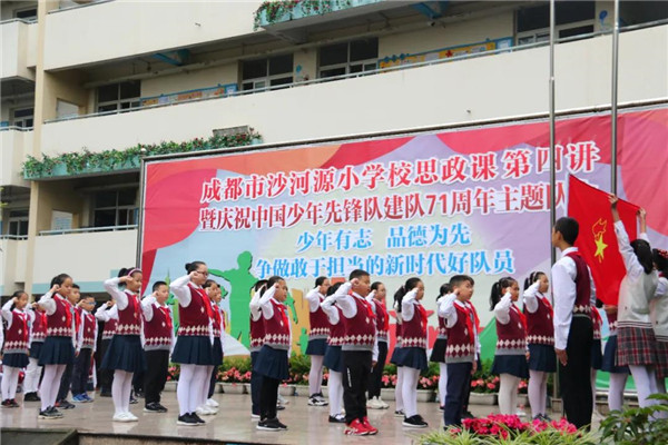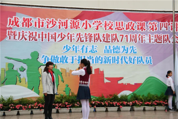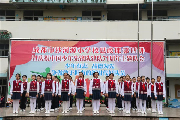 近日,成都市沙河源小学校举行了“少年有志 品德为先 争做敢于担当的新时代好队员”中国少年先锋队建队71周年庆祝活动。全校学生在操场上排着整齐的队伍,队员们佩戴鲜艳的红领巾,一眼望去整个校园顿时显得生机勃勃。