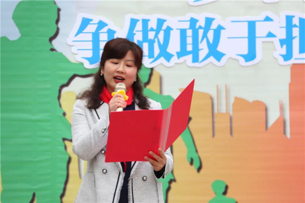 沙河源小学季志彬书记在致辞中表示,新时代,少先队员要热爱祖国,热爱人民,热爱中国共产党,树立远大理想,培养优良品德,勤奋学习知识,锻炼强健体魄,培养劳动精神,从小学先锋、长大做先锋,努力成长为能够担当民族复兴大任的时代新人。“其实先锋,模范就在我们身边,我们要学习他们敢于担当,迎难而上的精神和勇气。最后,送给大家一句话‘起而行之,勇挑重担’,让我们共勉。”
