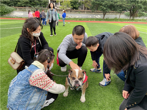 刚度过了国庆、中秋双节,2020年10月14日,成都市青羊区特殊教育学校迎来了2020年的第一批综合实践融合志愿服务校外志愿者——亚洲动物基金的6名志愿者和3名“狗医生”以及它们的主人们。“狗医生”是亚洲动物基金一项创新性的动物辅助治疗项目,通过让考核合格的“狗医生”志愿者与特殊需要儿童亲近,促进特殊需要儿童的良好行为,并提高特殊需要儿童的社交和沟通能力。