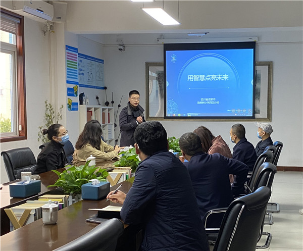 在专题交流分享方面,学校德育分管副校长程钰铭进行了德育专题交流,分管教学工作的杨明忠副校长以语文区级赛课磨课为题,做了教学专题交流。教育信息化作为泡小西区的办学特色,自然受到了跟岗校长们的一致关注,分管信息化的刘恋副校长做了信息化专题交流,向跟岗校长分享了学校建校十年来的办学思路和办学特色,并从教师成长、课堂改革、课程变革、评价变革等方面入手,阐述了教育信息化对学校发展的深远影响。科研室陈丹丹副主任就学校教育科研的探索之路这一话题,做了关于信息化课题的专题交流。