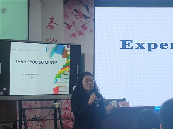 下午,来自北京昌平区教师进修学校小学英语教研员林红老师,就文本解读、英语“阅读圈”做了专题讲座培训。林老师针对jigsaw reading做了深入讲解,这种类型的课程模式,能够给予学生更多时间去阅读。在每节课的课程设计中,需要取舍和平衡。林老师高度肯定四位老师采取的教学设计活动。林老师指出,在阅读教学环节中,要去平衡words和pictures。通过discuss,才能达到两者关系之间的平衡。