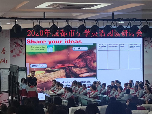 研讨会围绕“英语阅读与学生英语学科素养”这一主题,通过专题讲座和课例展示的形式交流小学英语阅读教学的核心理念,探讨小学生阅读素养提升的路径与方法。近400名成都市各区县的英语教研员、一线英语教师,以及来自省外重庆、北京等地的观课教师莅临现场观摩,此外,近5000名教师通过网络直播观摩此次研讨会。