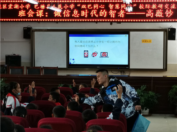 晨曦微光,和煦的朝阳洒进窗台,19日上午8点,在一曲轻松的音乐声中,由高薇钞老师带来的思辨型微班会《做信息时代的“智者”》拉开了送教的序幕。