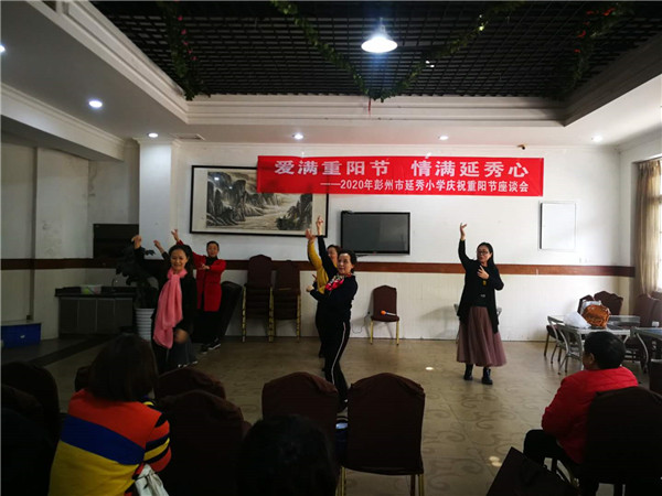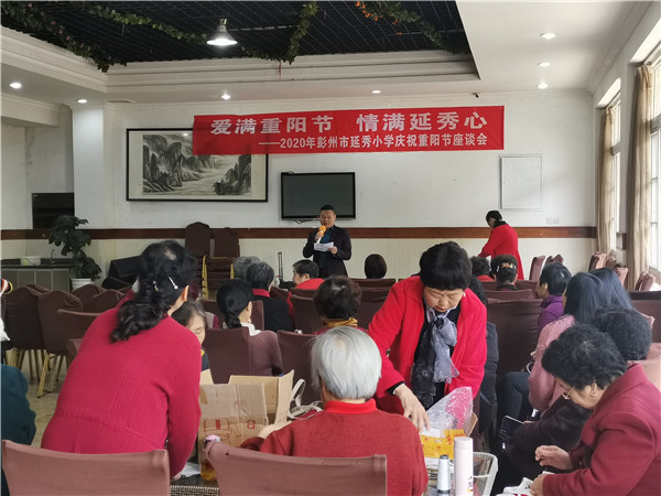 为弘扬中华民族尊老、敬老、爱老、助老的传统美德,10月22日上午,在学校党委和工会的领导下,彭州市延秀小学退管组在鑫悦酒楼隆重举行重阳敬老活动。70余名退休教师欢聚一堂,欢庆重阳佳节。