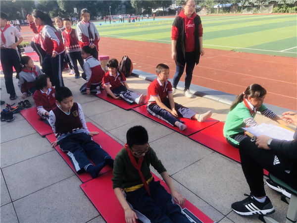 21日下午,该校五年级全体同学参与了运动会体质测试项目大比拼,一个个学生龙争虎斗,各尽其能;针尖对麦芒,谁也不服谁。