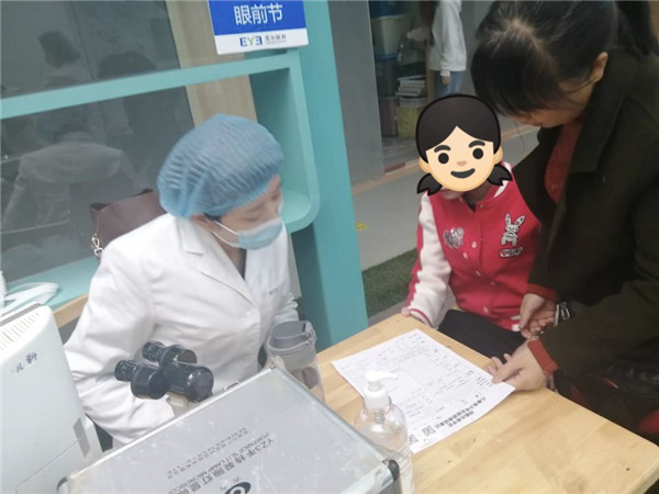在卫生保健老师王芙蓉和爱尔眼科医院医生的共同组织下,班主任、班级老师带领学生有序开展筛查工作。学生在眼科医生的指导下,配合各种测眼设备分步骤进行视力检查,医生通过对数视力表等测眼设备对学生的裸眼视力、屈光度、曲率、角膜散光进行测试,记录学生在眼科各个领域的数据,以便之后进行数据分析,筛查出视力异常的学生并提出恰当建议。