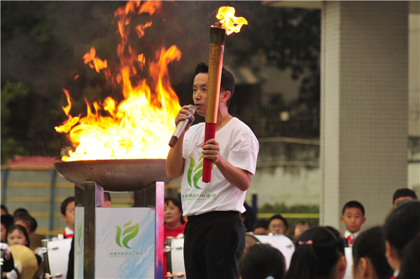最后,此次运动会开幕式压轴节目“火炬接力”惊艳亮相,由金泉运动公园为起点,联合4个校区,全程13公里,途经12个站点,12位领跑火炬手,80名助跑嘉宾,沿途啦啦队共计4000人,热血开跑。最后一站由李强校长手持火炬,带领8名嘉宾跑向主会场,登上主舞台,点燃主火炬,并对此次活动致辞。他希望全体茶小师生团结一致,勤于锻炼,勇于拼搏,传承体育文化,弘扬体育精神;希望孩子们在比赛的过程中尊重对手,互相学习,共同进步,做新时代的阳光少年。