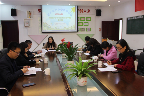 根据彭州市教育局统一部署,2020年10月30日下午,彭州市城关区片中小学教育联盟“以劳夯基”推进会在彭州市延秀小学召开。会议由彭州市延秀小学副校长高雪霞牵头召开,出席会议的有彭州中学、彭州中学实验学校、彭州市实验小学、南街幼儿园、机关幼儿园、彭中附小、沁园小学等相关领导。