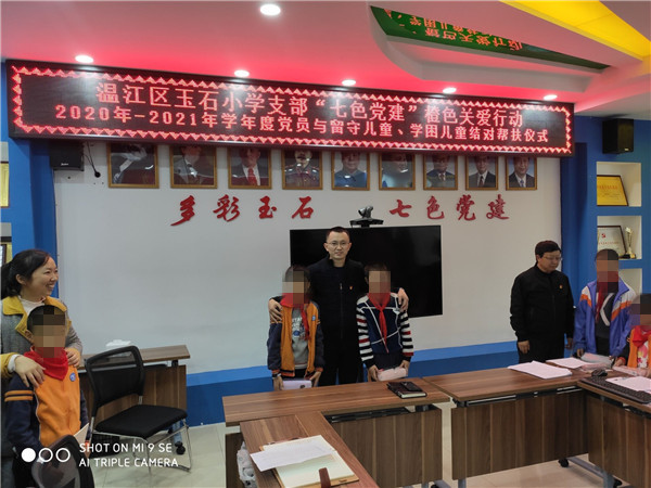 为进一步擦亮学校“多彩玉石七色党建”的品牌,实施“七色行动”中的“橙色关爱”行动,形成党员志愿服务长效机制,11月2日,温江区玉石小学党员阳光志愿服务队以“微善行动”为手段,提升党员爱心与奉献精神,将17名在校党员与本学年度20名留守儿童、学困儿童组成帮扶对子,开展结对帮扶行动,帮助他们学会学习,使他们健康快乐成长,感受党的温暖。