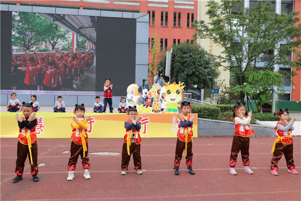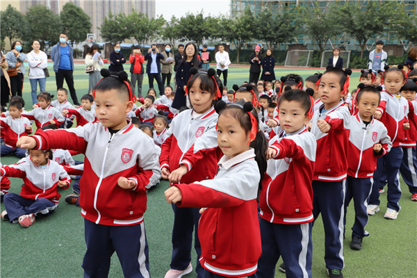 平地小跑、两两同学对整齐、跑直线、转直角,这些队列练习的小技巧已被小萌新完全掌握,养成了良好的队列习惯。快板《三句半》、武术操《哪吒》、手语操《听我说谢谢你》……10个精彩的节目让现场的家长及评委连连称赞,大家直言:不一样!真不一样!在海滨就是不一样!