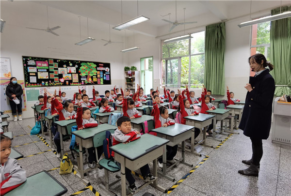 除了室外展示,还进行了室内PK赛,静息、起立、问好、举手发言……小萌新正在以挺拔的小小身躯展示对自己学校的热爱,“头正身直脚放平”可不只是一句口号,孩子们正在努力践行!课堂上,“老师提问我知道,举手发言我最棒”,一双双高举的小手就是一份份求知的渴望。