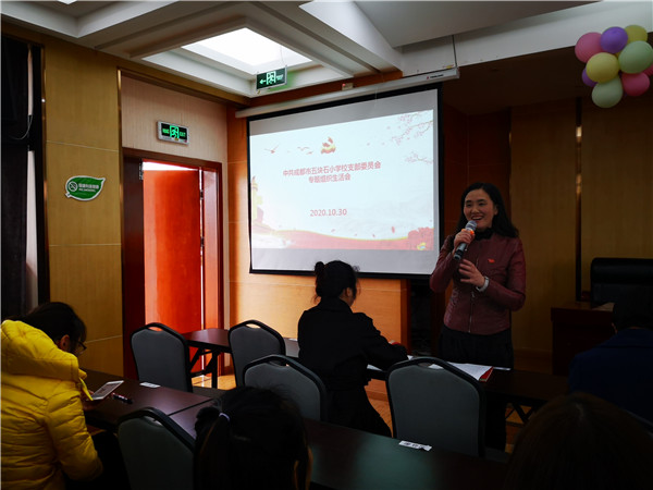 10月30日,成都市五块石小学校党支部组织全体党员在四楼会议室开展10月固定党日活动。本次活动由党支部书记朱玉清同志主持。