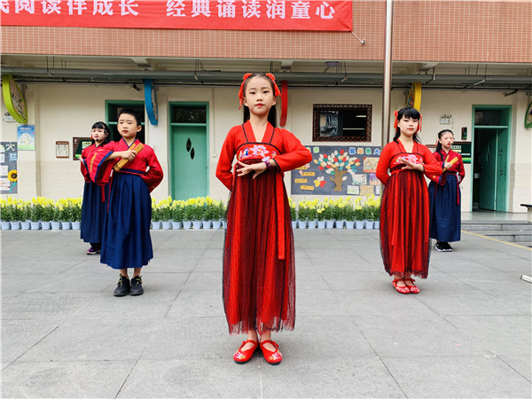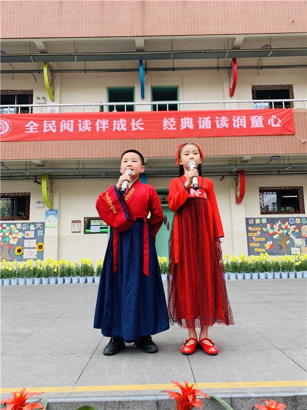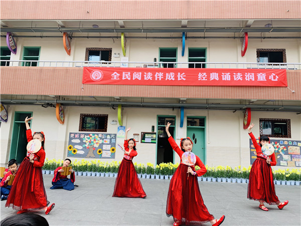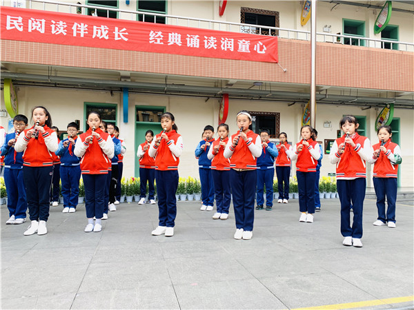 时快时缓的笛声带领全校师生深深沉浸在了书香,花香,墨香的校园里。