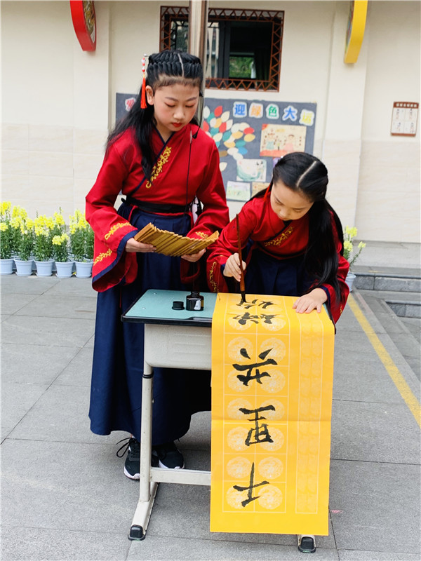 新的一周开始,伴随着成都市培华小学四年级四班孩子《水调歌头•明月几时有》的诵读声,培华小学第十周升旗仪式拉开了序幕。孩子们用自己深情的朗诵,翩翩的舞姿和流畅的书法向先贤问候,向经典致敬。