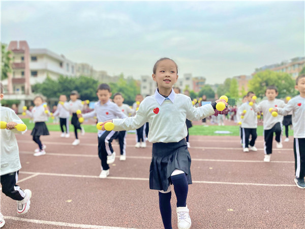 11月3日,成都天府第三中学附属小学(以下简称:天府三中附小)迎来了2020-2021学年首届体育节。各方队依次经过主席台,队列整齐,口号嘹亮,亮点纷呈。篮球、跳绳、花球……这些道具在稚嫩的小手中,充满活力。