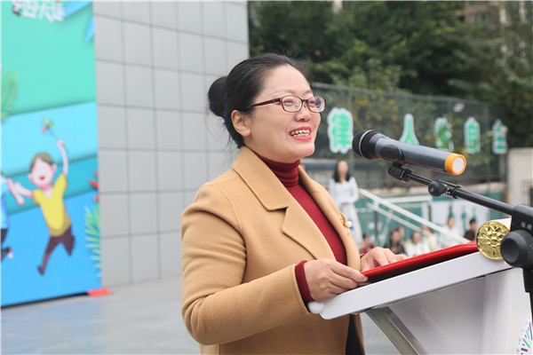 高校长在致词中阐述了体育节的意义,希望每位小运动员都斗志昂扬,努力拼搏,赛出风格。