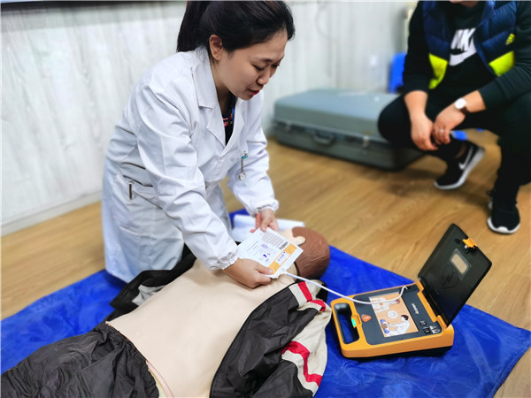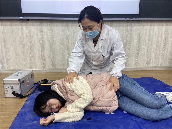 该校保健老师凭借十年的临床经验,用生动形象的语言为老师们讲解了突发性疾病急救理论知识,并借助器材做了现场演示,讲解操作要领。细致的讲解使老师们对心肺复苏的重要性产生了新的认知,对相关操作步骤由模糊渐渐变得清晰。保健老师就“鼻衄处置、晕厥处置、海姆利克急救法、心肺复苏、AED的使用”等方面进行了详细说明。