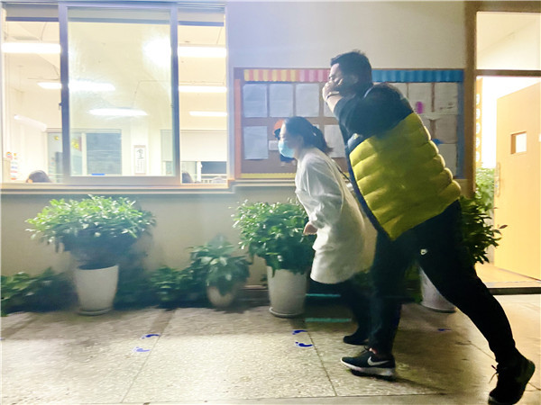 模拟演练中,一年级一班发现一名学生晕倒,判断无意识,老师立即协助孩子平卧,判断生命体征,把头偏向一侧防止误吸,松开衣领,疏散人群,空气流通,按压人中穴位,同时拨打保健室和安全处电话(老师确认学生无呼吸及心跳停止后,可在校医到达前实施心肺复苏)。安全处和保健老师接到电话后3分钟内赶到现场,发现学生已无生命体征,立即进行AED除颤后继续心肺复苏,同时拨打120急救电话。学生意识恢复。几分钟后,救护车赶到现场,迅速进行交接,送往医院治疗。学校急救得力,为患儿争取了生命最宝贵的急救黄金时间,保障了学生的生命安全。