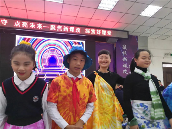 10月30日,磨子桥小学代小娅老师在小学分会场献课《校园时装周——扎染之美》。