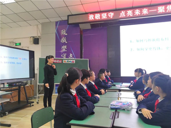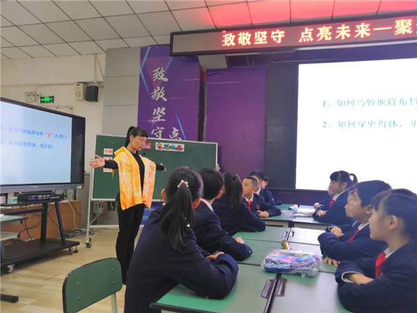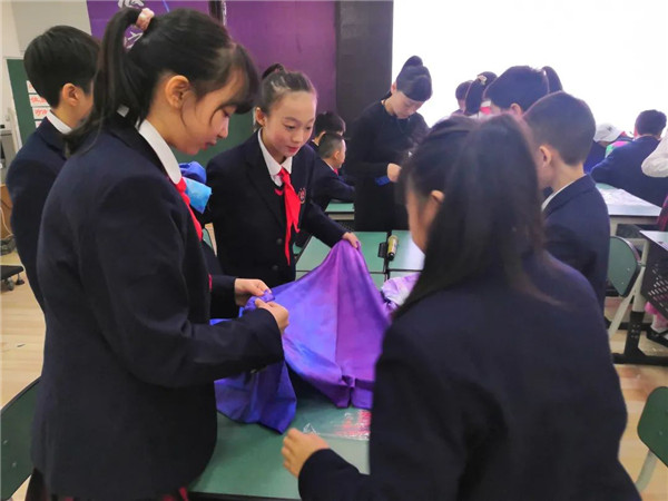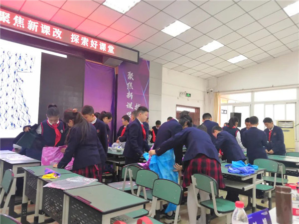 据了解,本节课是以单元课程形式开展,此次现场呈现的是第二课时内容。在第一课时中,学生通过赏析、讨论、自主探究等方式,学习运用多种折、扎、染的方法扎染作品。并在探究学习和制作体验的过程中了解扎染的历史与发展,感受非物质文化的艺术魅力,激发喜爱并传承发扬非物质文化的意识和情感。