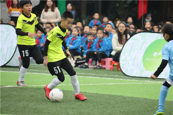 足球运动员们排着整齐的队伍,神采飞扬。在共同期待中,付锦校长为决赛班级开球,在一个个追逐奔跑的身影中,在一次次观众的欢呼中,亮黄与明蓝的足球队队服在朝阳下熠熠生辉,成为绿茵场里一道靓丽的风景线。