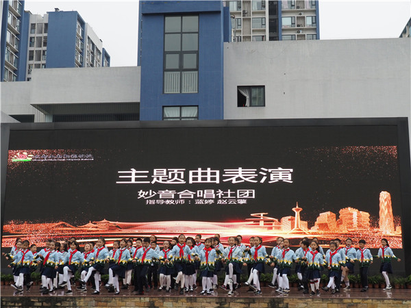 在庄严肃穆的升旗仪式后,该校妙音合唱社团为大家带来了本届秋运会的主题曲表演——《未来我来》,社团成员们的歌声美妙动听,音乐也将开幕式的气氛带动起来,大家都用歌声表达着对成都大运会的期待和祝福。