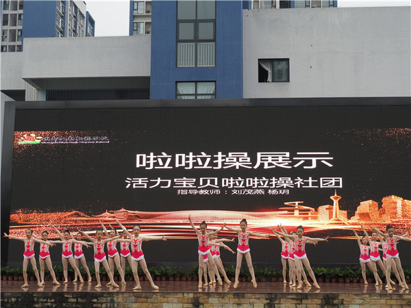 紧接着,活力宝贝啦啦操社团展示青春洋溢、朝气蓬勃的表演,动感的音乐、优美的体操动作瞬间点燃了全场师生的运动热情。