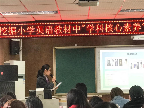 此次活动,由成都市武侯计算机实验小学、四川音乐学院附属实验小学、成都市龙江路小学祥云分校、成都市华西小学和四川大学附属实验小学五所学校的老师代表,分别对现行小学英语教材人教版(新起点)小学英语六年级Unit 4-Unit 6,进行以“核心素养”为导向的教材解析、课例和习题分享。