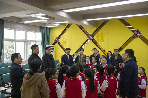 11月5日,成都市委宣传部文艺处处长李金亮、调研员高颂,成都市教育局体卫艺处副处长王权林、艺术专干薛原一行,到彭州市天府路小学调研戏曲进校园活动开展情况,彭州市教育局韩洪韬、王庆福同志陪同调研。