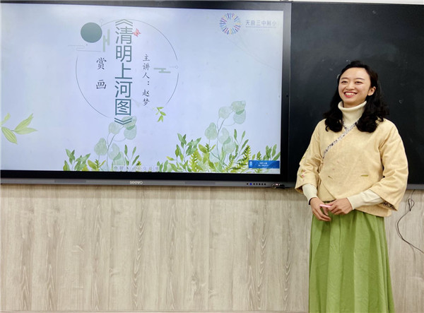 在中国,《清明上河图》可谓是无人不知无人不晓,但它到底画了什么内容,又有什么艺术价值呢?11月9日,成都天府第三中学附属小学(以下简称:天府三中附小)的量子讲坛,赵梦老师带着全体教师穿越回宋朝,走进《清明上河图》,一睹这幅传世名画的风采。