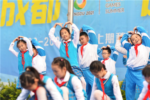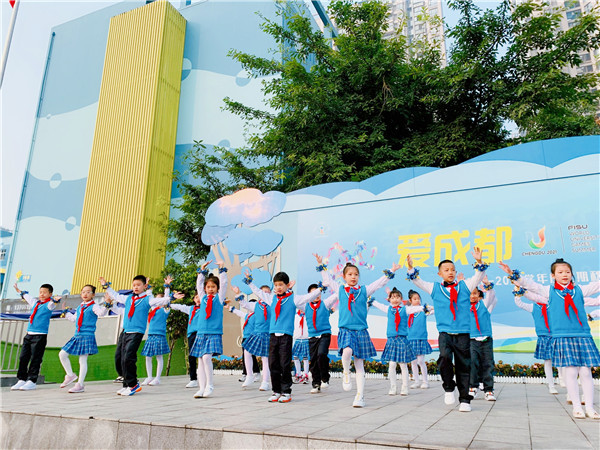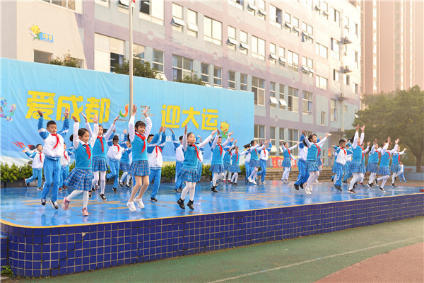 成都,一座有着两千多年悠久历史的城市,古有杜甫笔下“晓看红湿处,花重锦官城”的淡雅清幽,今有“全国最具幸福感城市”的美誉。2021年,成都将迎来世界性综合运动会——世界大学生运动会。伴着轻快的音乐,孩子们用热情洋溢的舞蹈诠释出成都人的骄傲与自豪,展现出泡泡娃对大运会盛事的期待与憧憬。正值青春少年的他们,用自己的实际行动践行爱成都的誓言,携起手来向未来出发、向快乐出发!