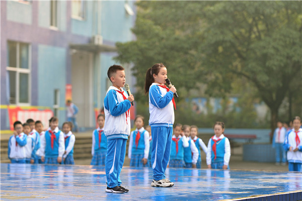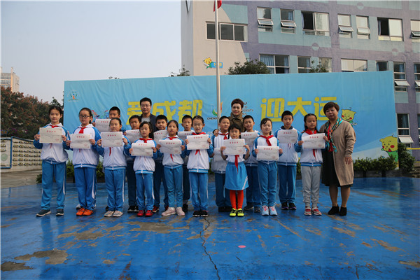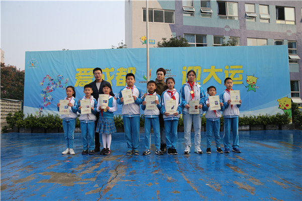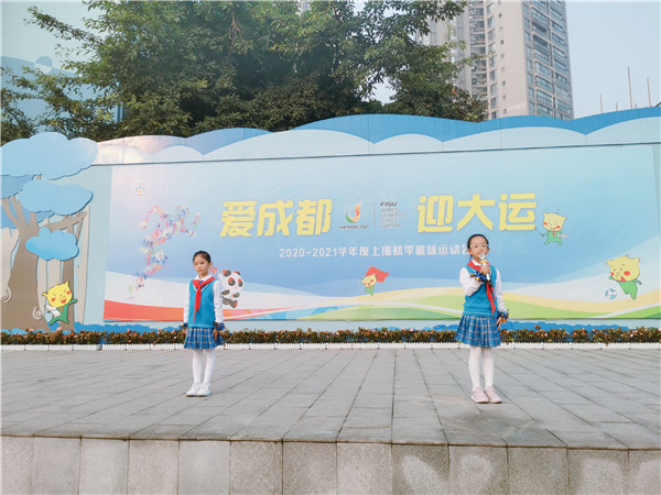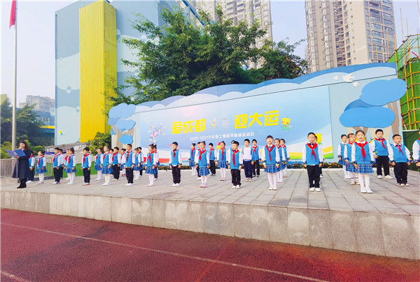升旗仪式后,2.3中队和4.8中队的孩子们分别带来了以“爱成都 迎大运”“文明礼仪伴我行”为主题的国旗下活动。