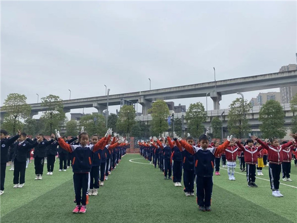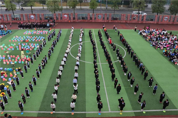 首先是队列队形与广播操比赛。一个个班级组成了一幅幅美好的画卷,整齐划一的动作彰显着孩子们对于集体的尊重,各色的服装代表着属于班级的特色,既有“和而不同”更有“美美与共”。