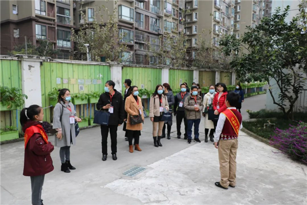 小小领导者们带领攀枝花市语文骨干教师参观美丽的北新校园。