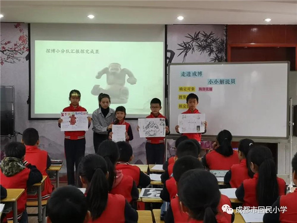 场馆文化课程的开发单靠学校老师是不行的,课题组要利用场馆资源开展学习,就要促进场馆与学校教学、综合实践的有机结合。因此,学校特邀成都市博物馆杜宇老师用专业知识为孩子们详细介绍博物馆与说唱俑。