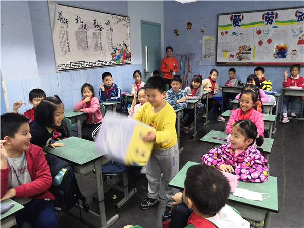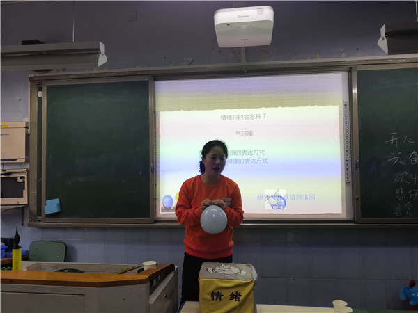 小雨老师首先让同学们说说自己曾经有过的情绪,通过播放音乐让孩子们感受音乐中的情绪,引导孩子们认识了四个基本情绪“喜、怒、哀、惧”。在投掷情绪立方体的游戏中,让孩子们互动表演各种情绪产生的表情,场面生动有趣,气氛热烈。此外,通过让孩子们完成情绪判断题,帮助学生树立正确处理情绪的观念。最后,在“小红、小粉、小蓝”的气球操体验中,孩子们直观地感受到了不健康的情绪表达方式产生的后果。借此,小雨老师告诉孩子们情绪管理就是在面对不良情绪时,使用科学正确的方式探索自己的情绪,调整情绪、理解情绪并放松情绪。不伤害自己,不伤害他人才是正确的情绪处理方式。并向同学们推荐了“情绪垃圾箱”、多参加运动等舒缓情绪的方法。