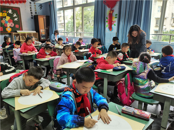 黄俊熠妈妈引导大家观察自行车的形状和构成,并带着孩子们一起创作《骑自行车者》。孩子们安静、认真绘画,黄俊熠妈妈耐心讲解图画布局及线条设计等,和孩子们积极互动,整个课堂生动活泼。