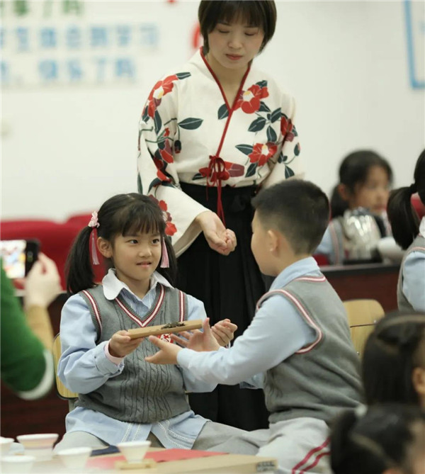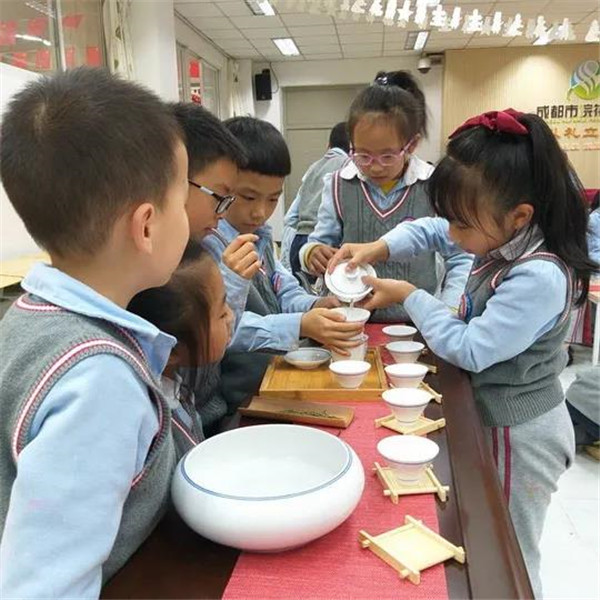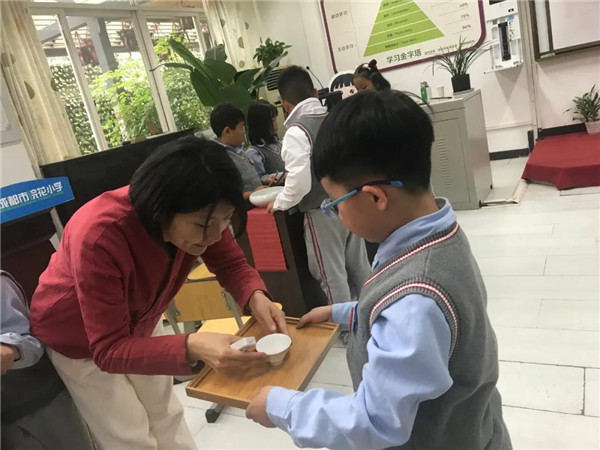 2020年11月15日,成都公益组织服务园的橙子老师和姣姣老师给成都市浣花小学三年级和一年级的孩子们带来了一堂“小茶师”实操体验课。