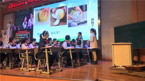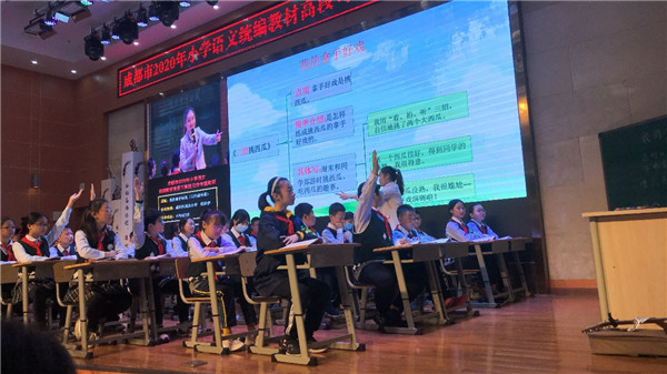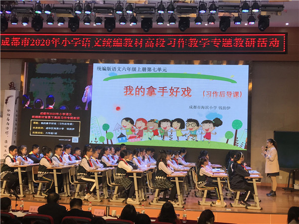 “原来语文课还能这样上!”观课的老师们都在感叹。这堂特别的语文课是由来自成都市海滨小学钱韵伊老师带来的部编版六年级上册七单元习作课《我的拿手好戏》,而那首《少年》则是这位多才多艺的老师的动情弹唱。以这样一种方式开场,在短短五分钟内,让现场的孩子们和老师们都热络了起来。