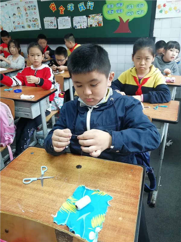 10月25日,成华实验小学五年级一班的刘莉老师给同学们上了一节别开生面的劳动课——钉扣子。