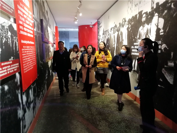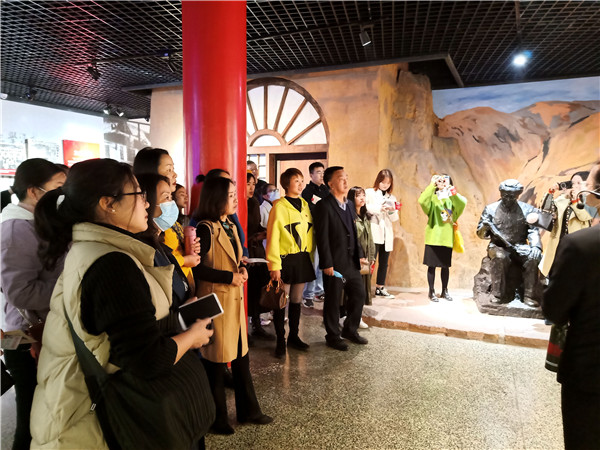 在群雕广场,200多位抗日将士英雄雕像昂首挺立于天地之间。全体党员同志怀着崇敬的心情,在讲解员的带领下,认真注视和聆听,对舍生忘死、浴血奋战的革命先烈、为国家和民族独立流血牺牲的同志肃然起敬;馆内展出的抗日将领和众多志士可歌可泣的事迹,更让党员同志们深受感动,纷纷表示将追寻先烈的足迹,弘扬优良的革命传统,立足本职干好工作。